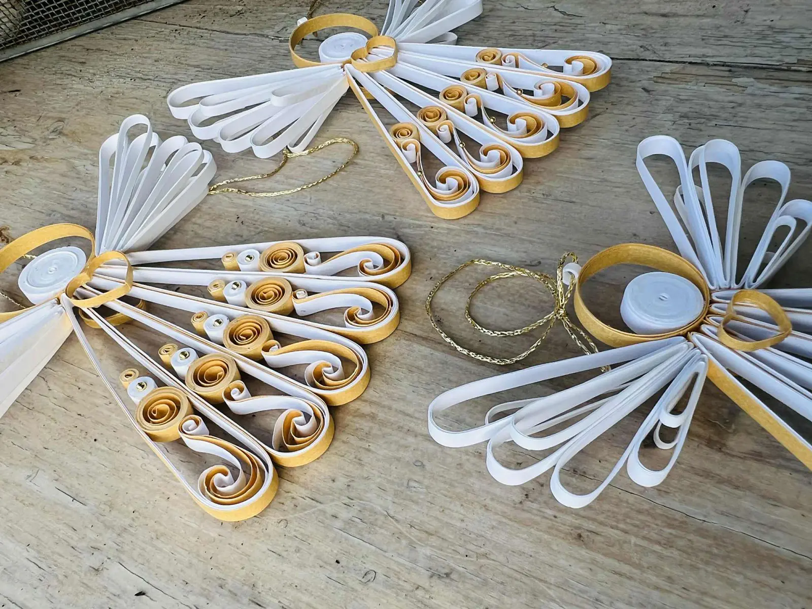 Lav for eksempel disse fine engle med vores fantastiske Mini-Quiller dråbe. En virkelig smuk idé til juletræet eller som pynt i vinduet. På billedet har vi brugt Dråben til både at lave vingerne og kjolen.